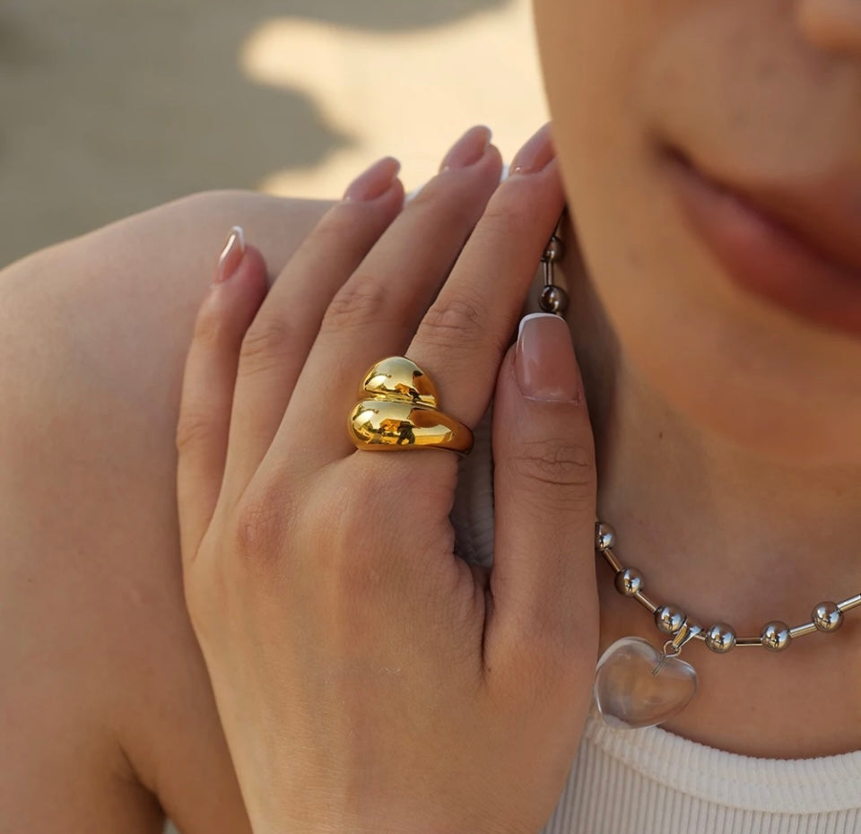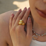 Stainless Steel Ring Women 18k Gold Plated Minimalist Polished, water resistant.